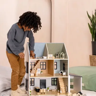 Welcome home! A big beautiful house just for your little one! In addition of being spacious and stylish, our dollhouse is large enough so multiple children can play at the same time. Endless numbers of beautiful stories are waiting to be created in these walls. With 3 bedrooms, a bathroom, a kitchen, a dining room, a living room and a garage, it has everything you need to make any real estate agent languish! Everything you need to furnish every room in the house, such as a kids rooms (you will even recognize our popular House bed!), furniture and accessories for the kitchen, living room, bathroom and more !